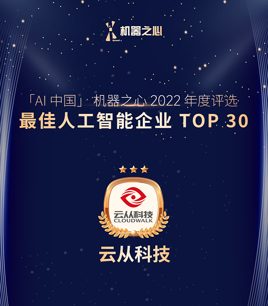 云從科技憑借在過去一年的取得的發展,獲得最具創新價值落地案例TOP30和最佳人工智能企業TOP30兩項大獎,這也是云從連續6年榮獲最佳企業獎項。