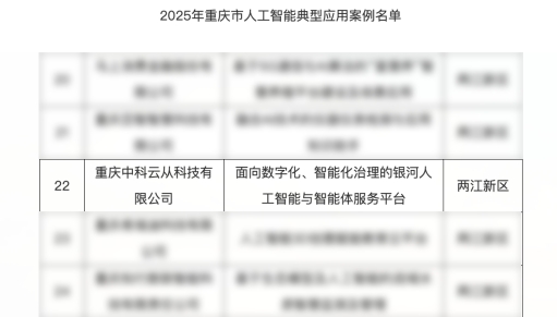 政企協同的科技創新體系正在中國西部加速形成。 在重慶市企業碼上服務平臺(渝企碼)上,某制造企業負責人提出企業需要融資,平臺快速識別其融資需求并結合其企業信息快速推薦符合其要求產品,幫助企業快速完成融資申請——這是云從科技作為主要能力輸出方為重慶中小企業帶來的數字化服務新體驗。 近日,重慶市經濟信息委公布2025年人工智能典型應用案例名單,云從科技“面向數字化、智能化治理的銀河人工智能與智能體服務平臺”成功入選,標志著云從在推動區域產業智能化升級方面取得重大突破。