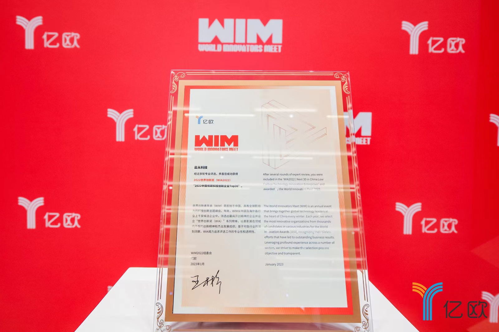 近日,由億歐主辦、中關村國家自主創新示范區展示中心及中關村會展與服務產業聯盟聯合舉辦的“WIM2022創新者年會”,在北京正式開幕,會上評選頒發了“ 2022 中國低碳科技創新企業Top30 榜單”,云從科技位列其中。