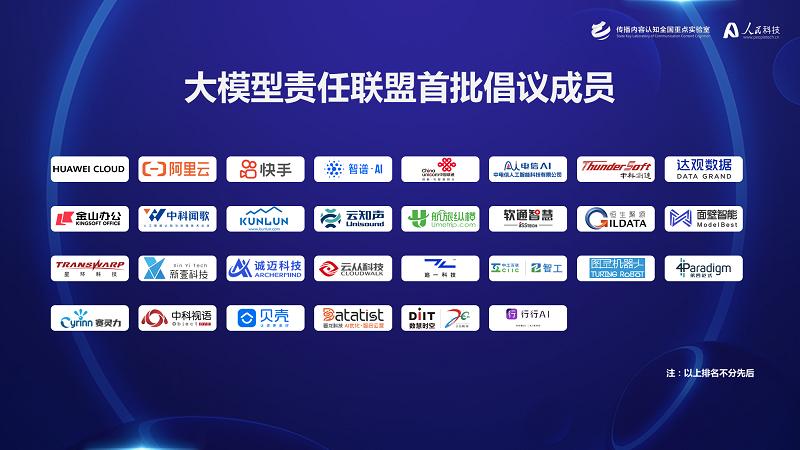由傳播內(nèi)容認知全國重點實驗室科技倫理委員會指導(dǎo)、人民網(wǎng)科技公司聯(lián)合大模型企業(yè)共同發(fā)起的“大模型責(zé)任聯(lián)盟”宣布成立。聯(lián)盟首批成員單位共30家,包含云從科技、華為云、阿里云、智譜AI等多家優(yōu)秀企業(yè)。